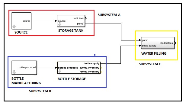 Figure 2: Simulink model of the Water Bottling Plant Facility
